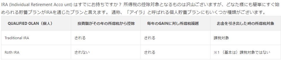 つまり、ただ単純に税金を支払う位ならば、「IRAで老後の積み立てを行い、所得税の控除に努める方が賢明」。